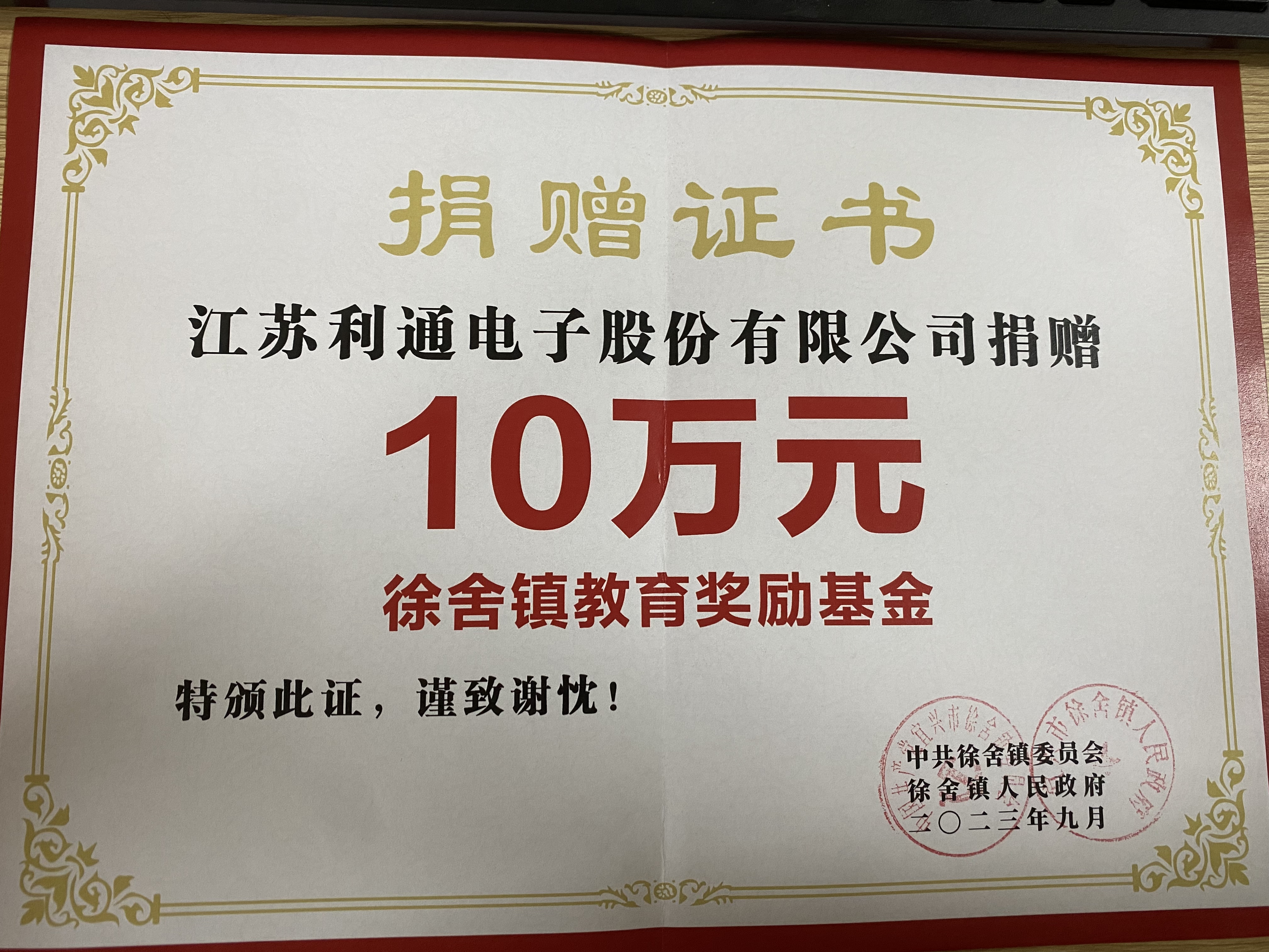 2023年9月8日上午,徐舍镇隆重召开庆祝第三十九个教师节暨2023年度教育工作会议。凤凰联盟最新官方网站认捐10万元,支持徐舍镇教育事业的高质量发展。我司作为慈善捐赠爱心企业受邀参加此次会议。凤凰联盟最新官方网站一直树立以人为本的企业文化,在关注自身发展的同时,也用实际行动践行着企业的社会责任,积极倡导爱心公益,情系教育,心系发展,为教育事业贡献自己的一份力量。